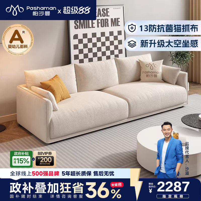 帕沙曼新款布艺沙发小户型客厅北欧简约奶油风模块直排猫抓布宠物