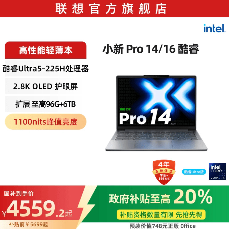 【国家补贴20%】联想小新Pro14/Pro16 酷睿Ultra5 AI超能本可