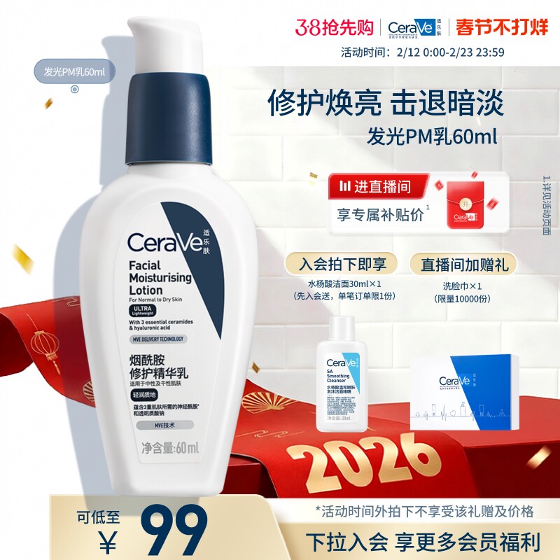 CeraVe适乐肤PM乳烟酰胺焕亮油皮乳液补水保湿面霜官方正品
