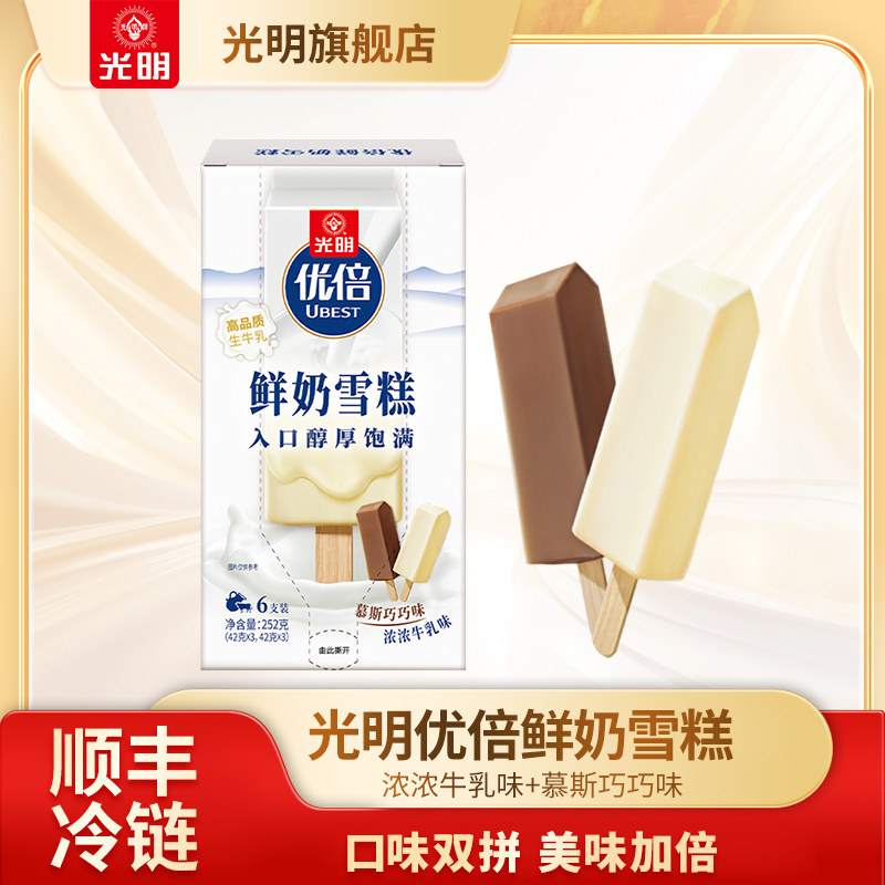 光明优倍鲜奶雪糕慕斯巧巧味浓浓牛乳味冷饮冰淇淋雪糕42g*6支/盒