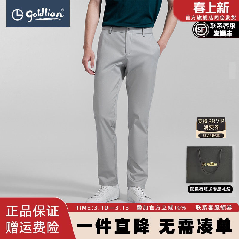 【轻薄透气】金利来秋季男士舒适修身直筒微弹裤子商务休闲裤长裤