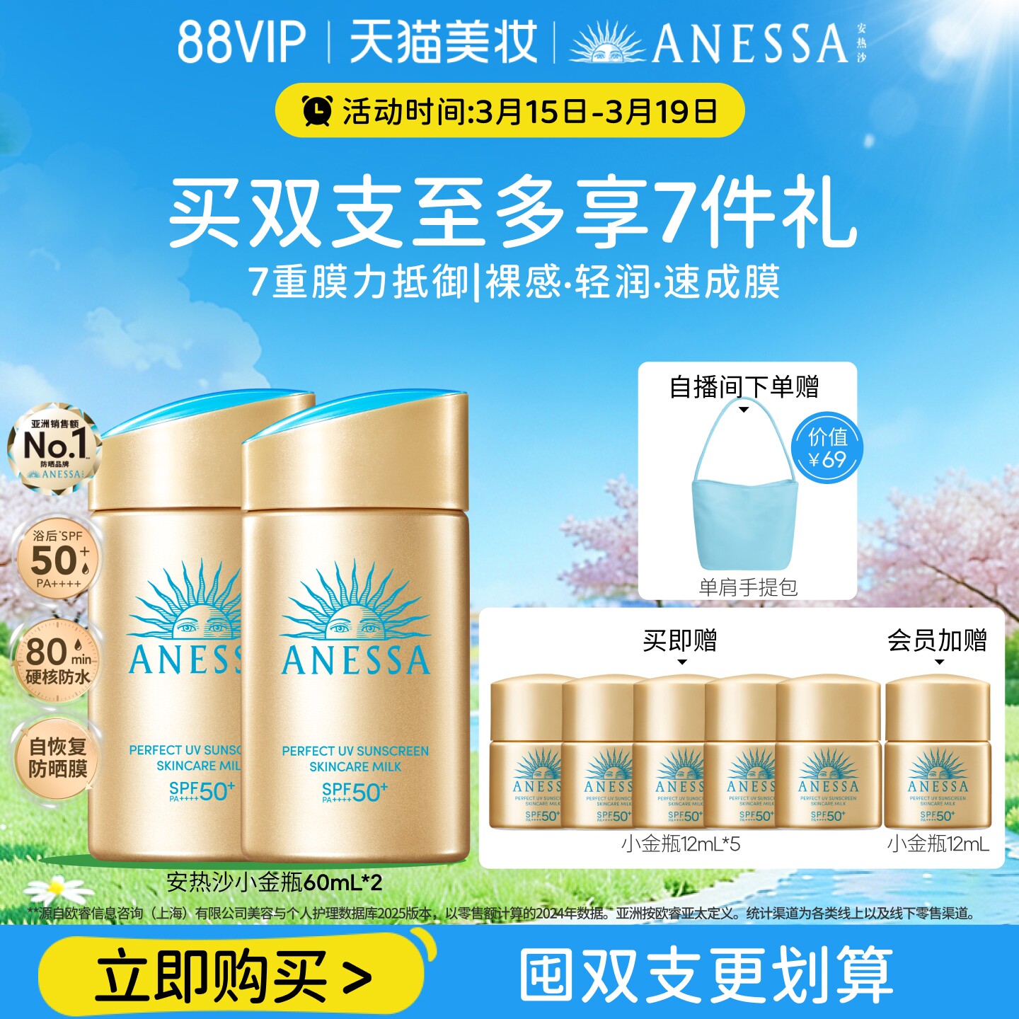 安热沙小金瓶防晒霜乳60ml*2高倍耐晒轻薄清爽防水
