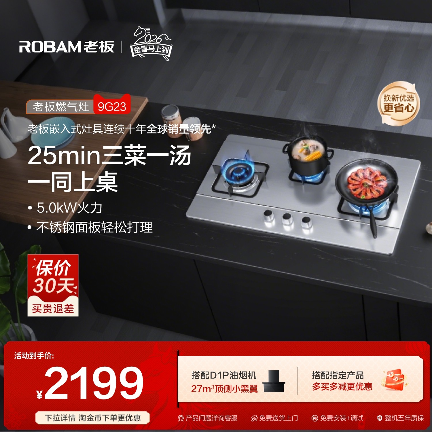 老板9G23不锈钢防爆灶三眼燃气灶煤气嵌入式家用天然气液化气双灶