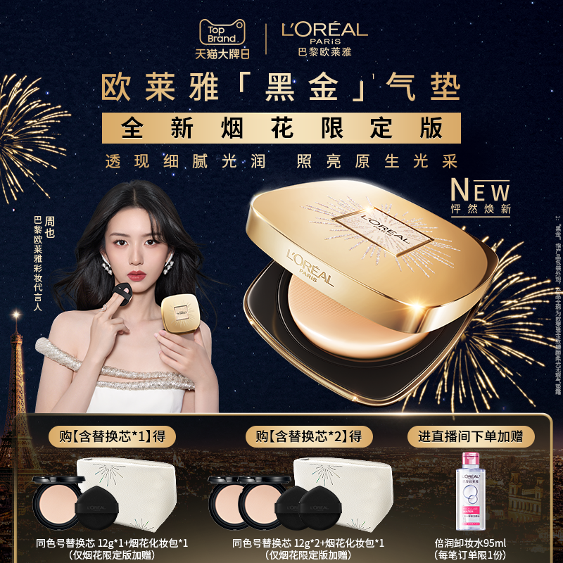 【周也推荐】欧莱雅金致臻颜黑金气垫滋润干皮防晒遮瑕持久不脱妆