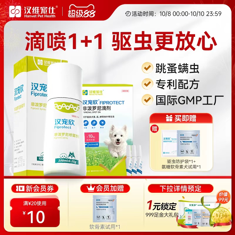 汉维宠仕汉宠欣非泼罗尼滴剂体外驱虫喷雾狗狗猫咪可用蜱虫跳骚
