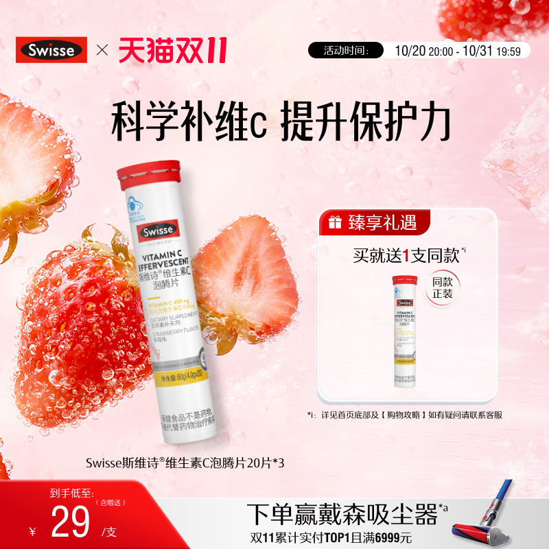 Swisse斯维诗维生素C泡腾片高浓度维C草莓味提升自护力官方正品