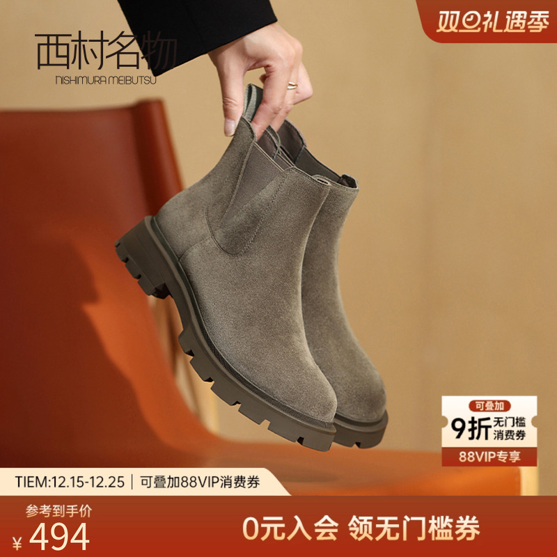 西村名物英伦风真皮绒面厚底增高加绒烟筒烟管靴切尔西短靴不累脚