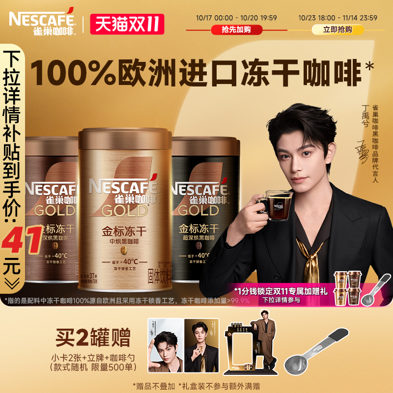 【代言人丁禹兮同款】雀巢咖啡金标美式速溶咖啡冻干黑咖旗舰店