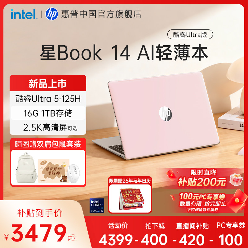 【限时补贴】HP/惠普可选星Book14英特尔酷睿ultra5/7笔记本电脑轻薄