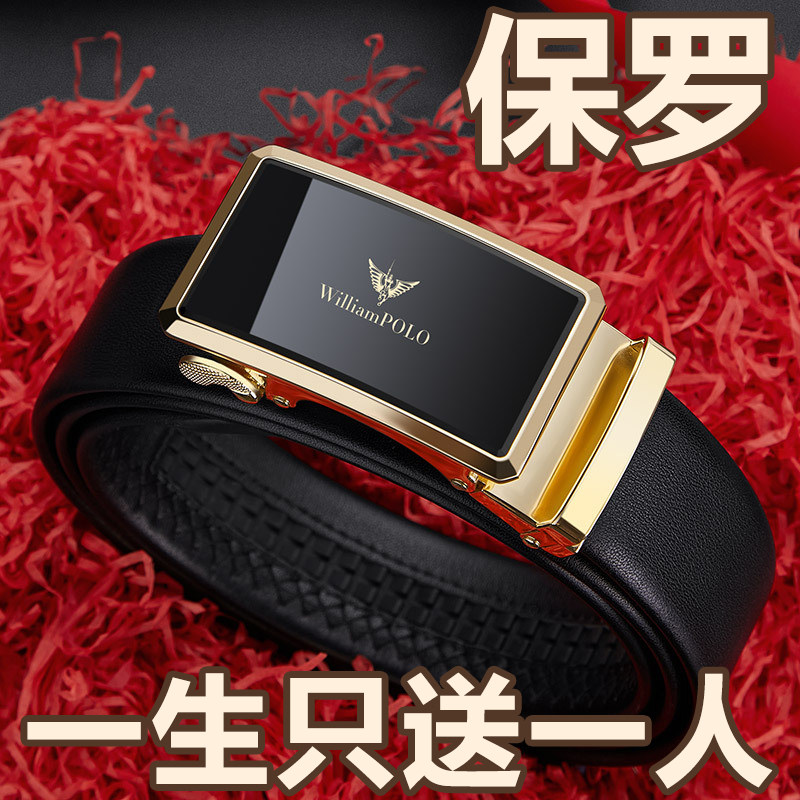 • 泡美丽»»保罗皮带男真皮自动扣高档商务头层纯牛皮腰带百搭2026男士裤腰带