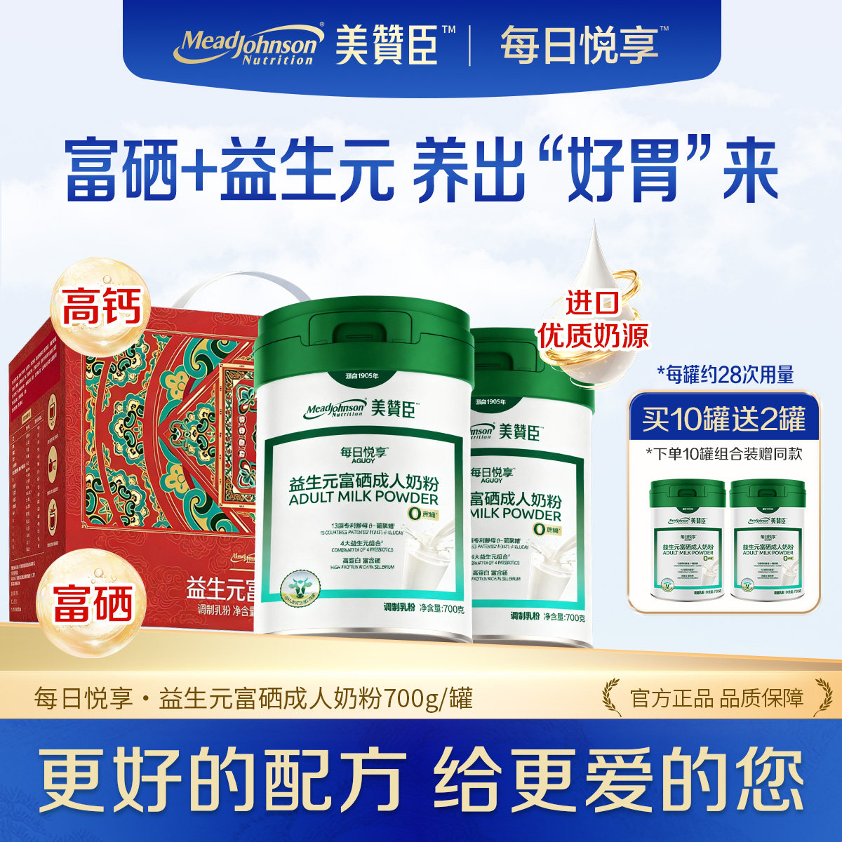 美赞臣中老年奶粉益生元富硒高钙成人奶粉0蔗糖送礼营养官方正品