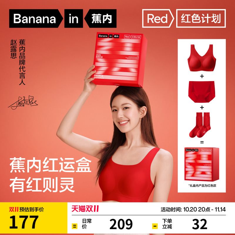 礼盒蕉内红色计划5系无痕文胸内裤本命年内衣套装女胸罩新娘结婚