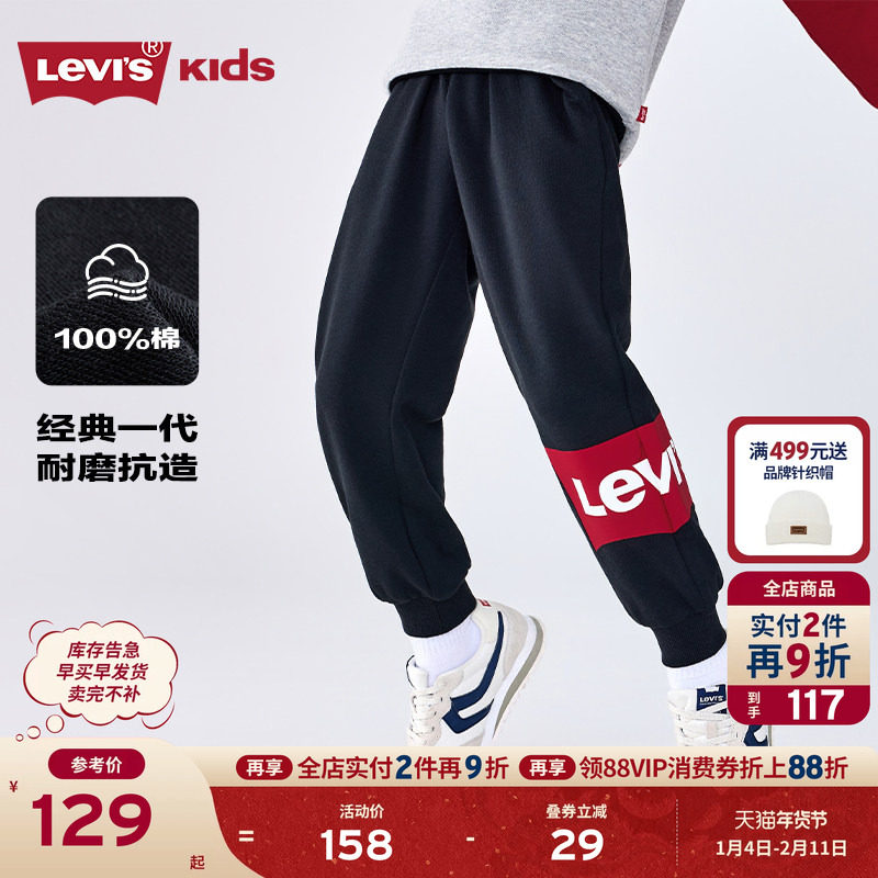 Levis李维斯童装儿童裤子春秋新款男童运动裤女长裤卫裤男裤童装