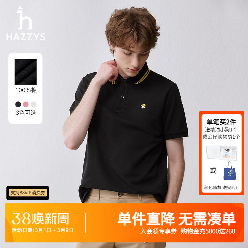 Hazzys哈吉斯奥莱夏季男士短袖T恤衫纯棉韩版宽松polo潮流上衣