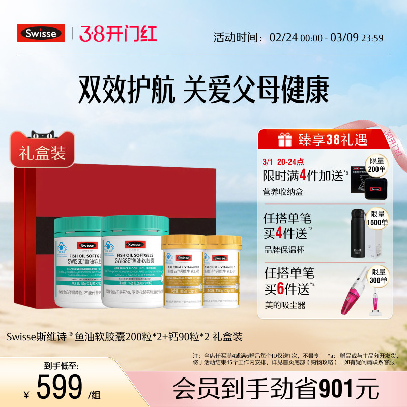 Swisse斯维诗鱼油深海鱼软胶囊omega3成人中老年长辈送礼官方正品