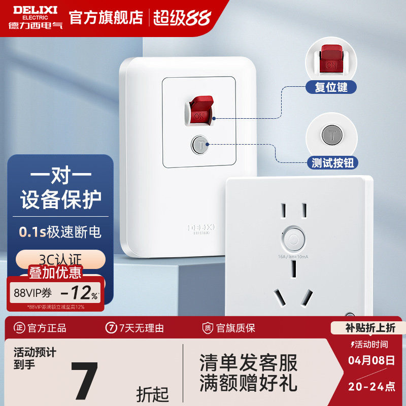 德力西开关漏电保护插座86型暗装空调16a家用32A电源漏保带开关
