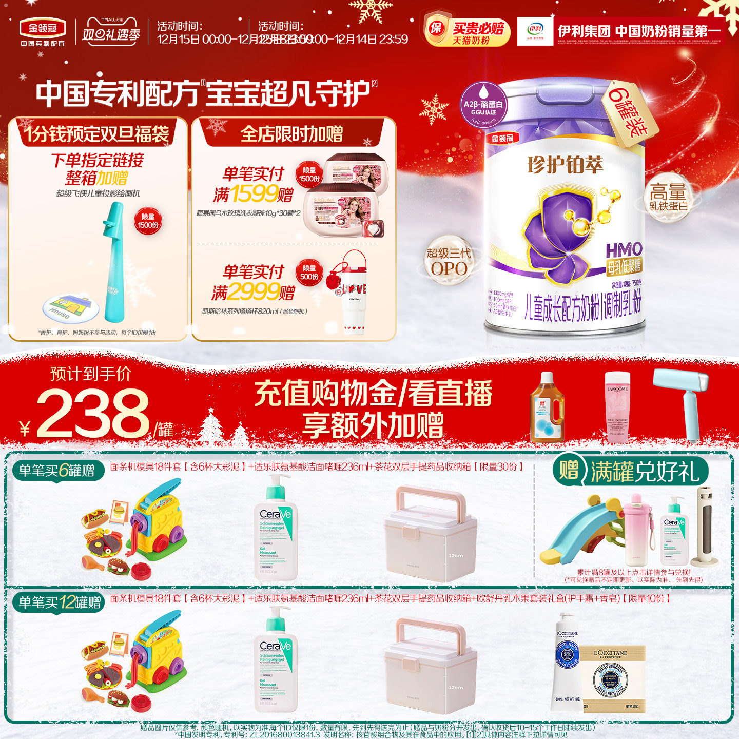 【全面营养】伊利金领冠珍护铂萃4段3岁以上儿童成长牛奶粉750g*6