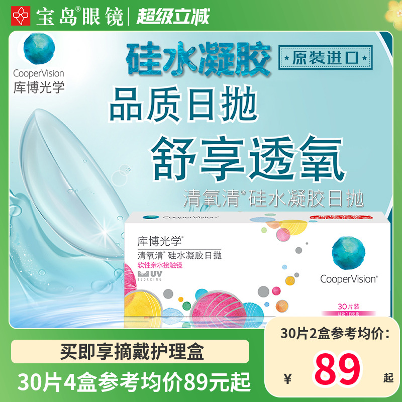 库博光学清氧清日抛30片硅水凝胶透明隐形近视眼镜进口旗舰店正品