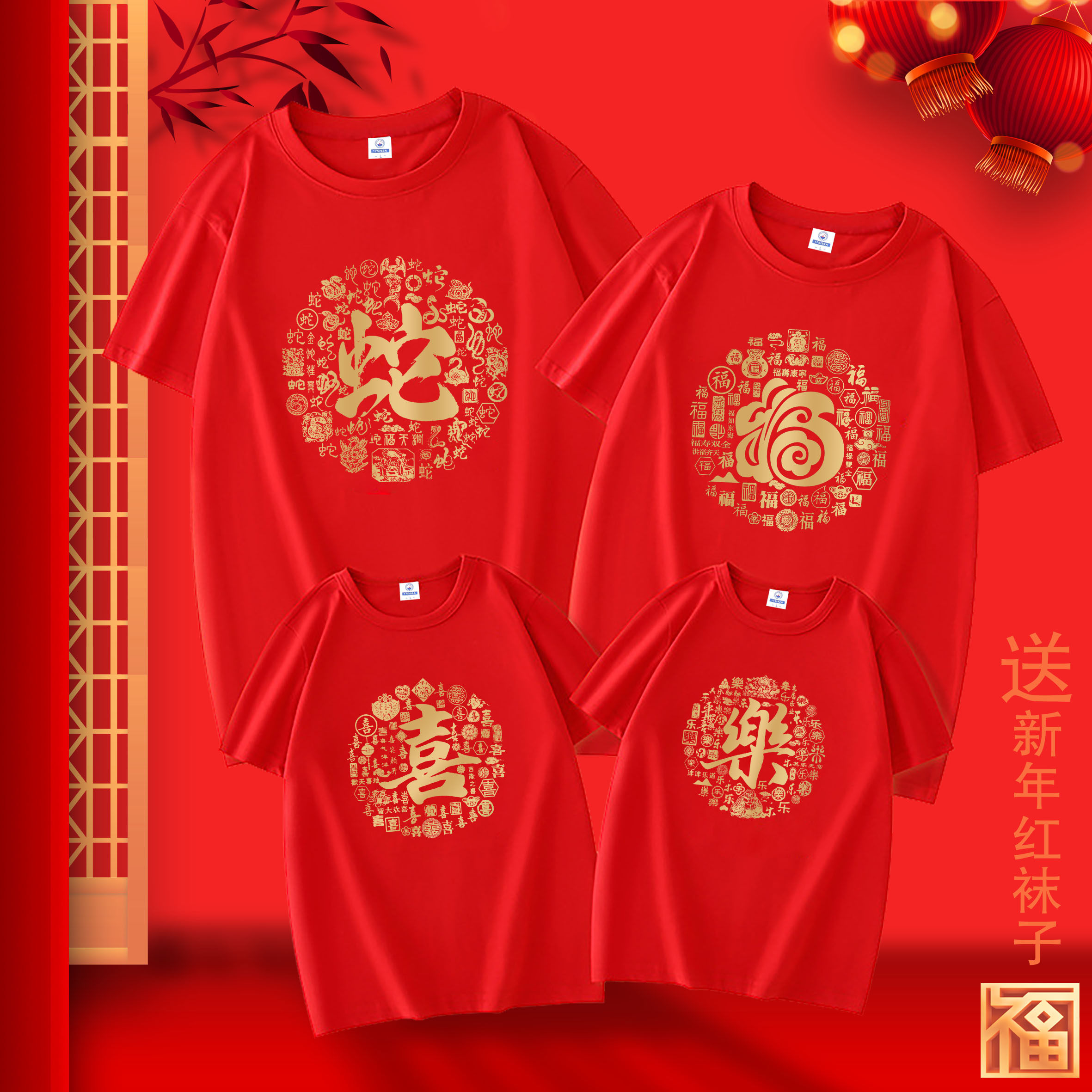 2026马年T恤男女本命年红色新年快乐圆领短袖春节演出活动带福衣