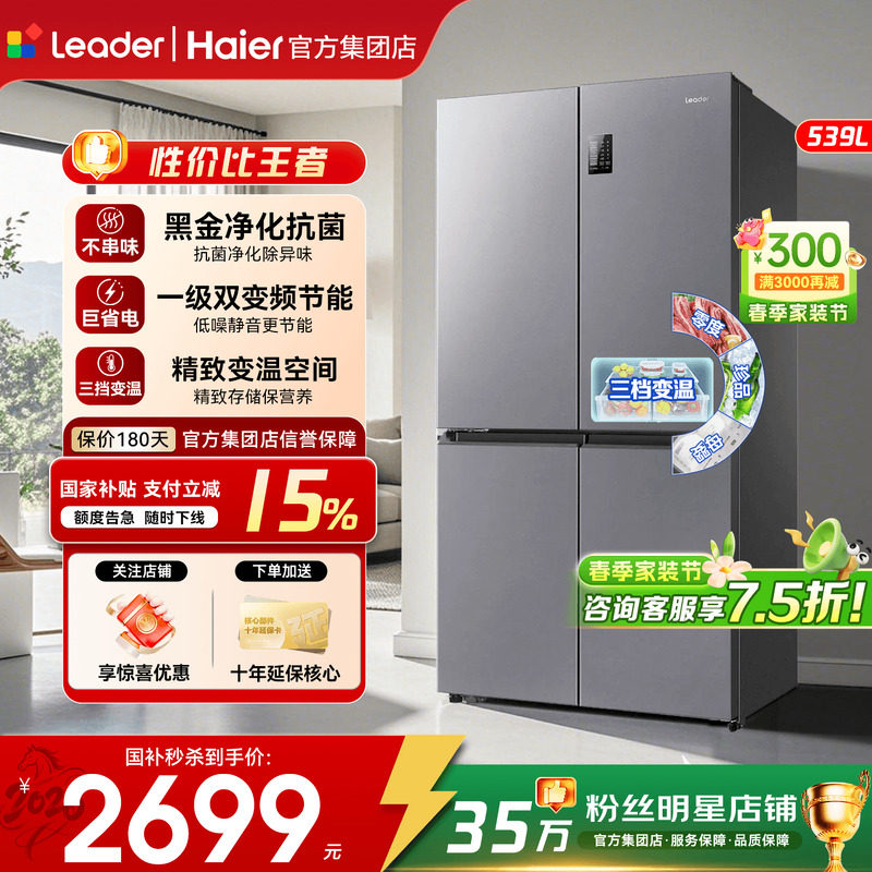 国补15%]海尔冰箱539L升超大容量统帅家用一级变频十字四门旗舰店