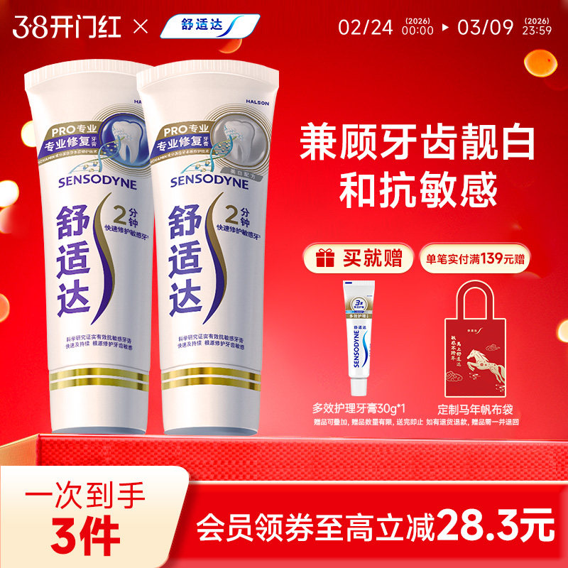 • 泡美丽»»舒适达抗敏感牙膏专业修复美白180g混合装亮白牙齿4D修复小亮钻