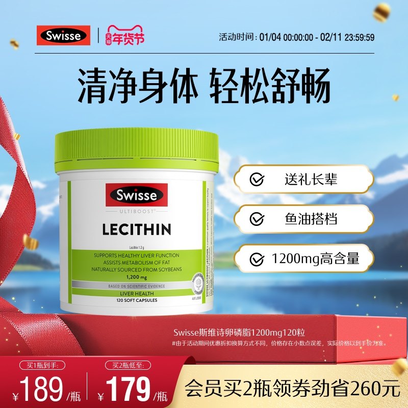 Swisse斯维诗大豆卵磷脂软磷脂胶囊心血管健康 辅助添活力中老年