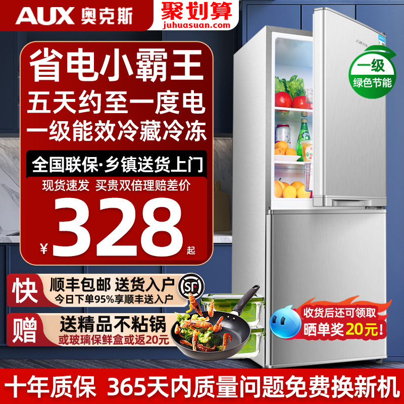 一级能效奥克斯146/176L双门冰箱家用小型两门租房大容量电冰箱
