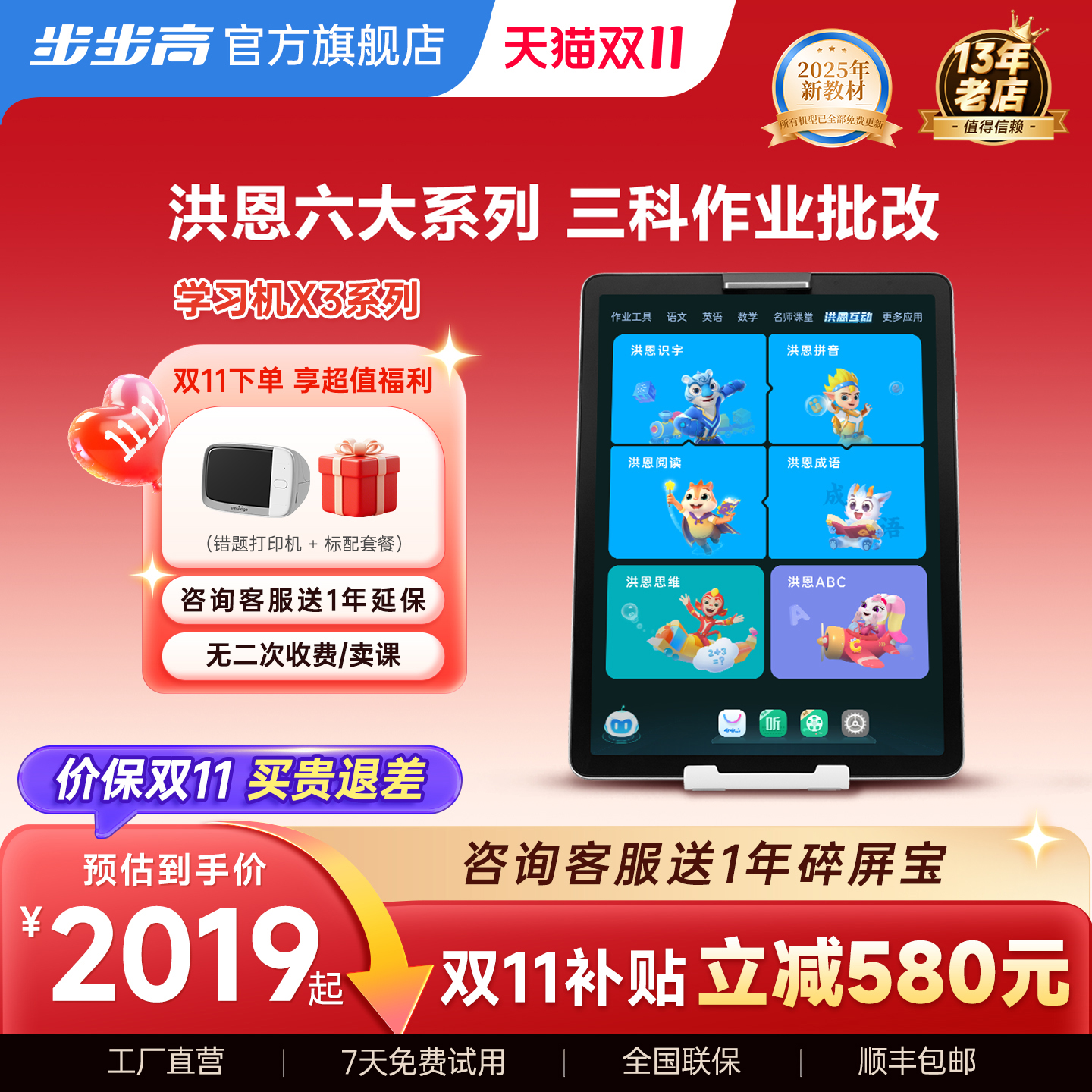 【官方旗舰店】步步高学习机X3学练家教机洪恩ai智能批改原题一年级到六年级英语专