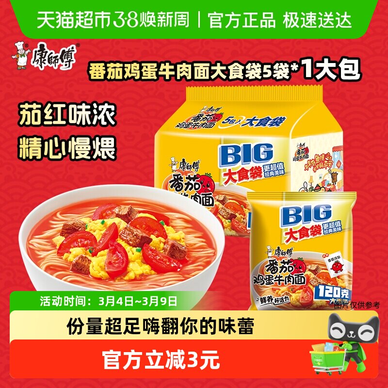 康师傅方便面大食袋番茄鸡蛋牛肉面袋装泡面速食食品