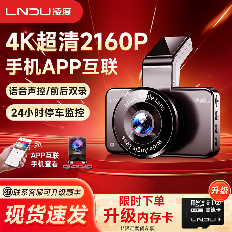 • 泡美丽»»凌度行车记录仪4K超高清夜视2026新款免走线汽车前后双摄360全景