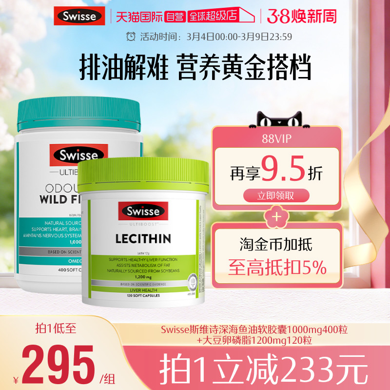 【自营】Swisse斯维诗深海鱼油胶囊高浓度+大豆卵磷脂软胶囊120粒