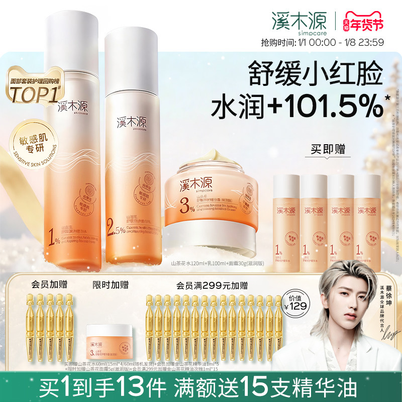 溪木源山茶花水乳套装敏感肌补水保湿舒缓滋润修护肌肤屏障学生女