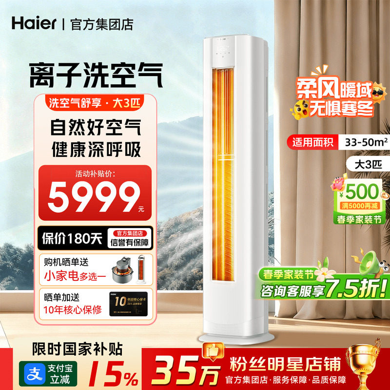 海尔空调洗空气麦浪舒享款家用3匹新一级变频新品柜机72E3旗舰店