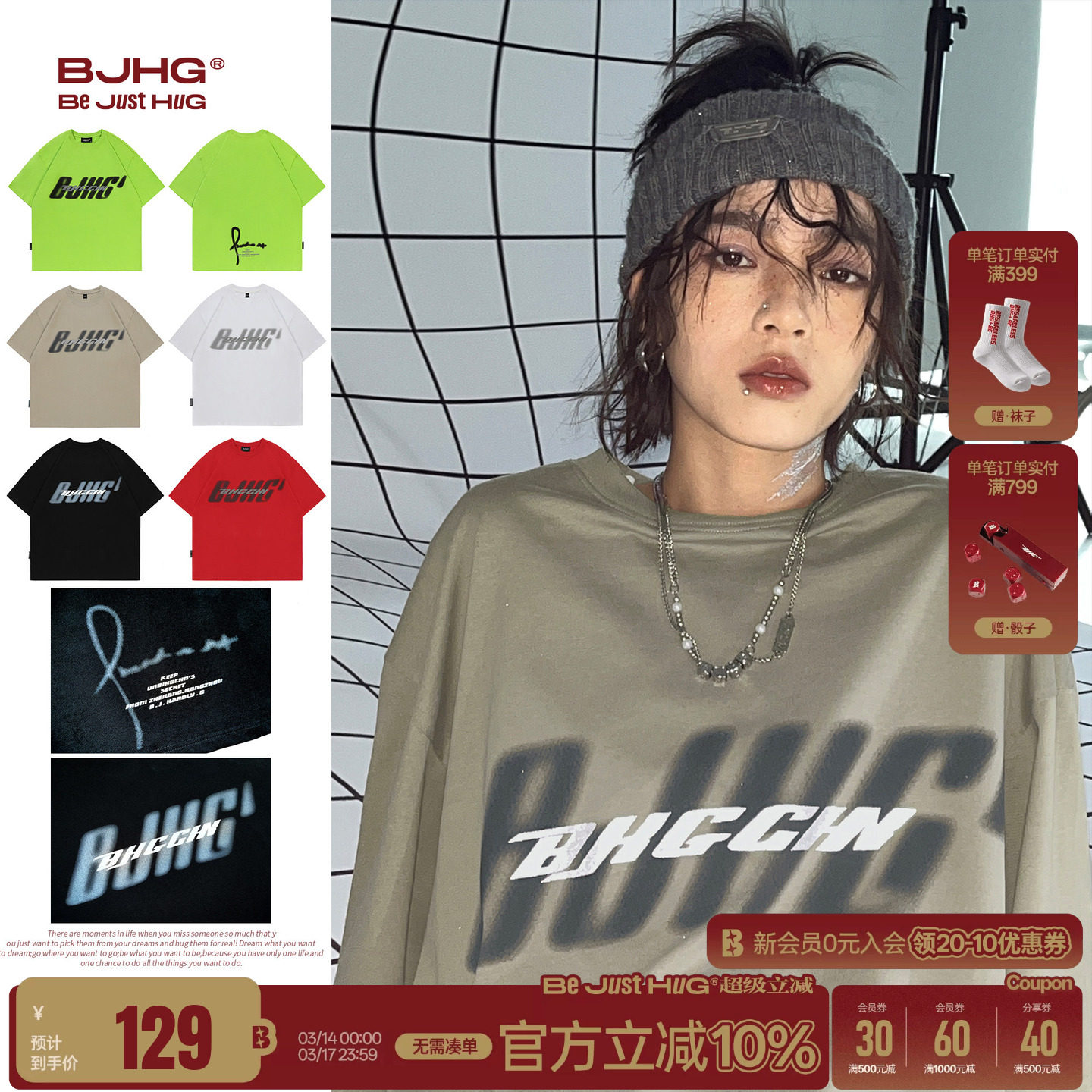 BJHG不计后果 美式短袖男款t恤夏季新款潮纯棉宽松情侣款半袖上衣
