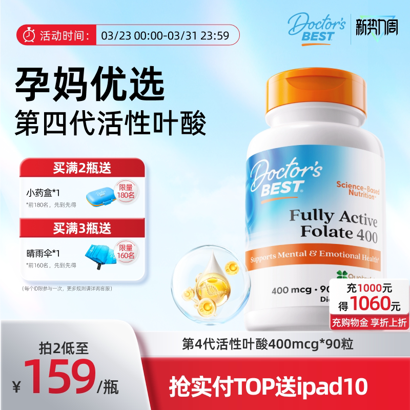 Doctors Best多特倍斯金达威活性叶酸多维营养信心甲基孕前vb