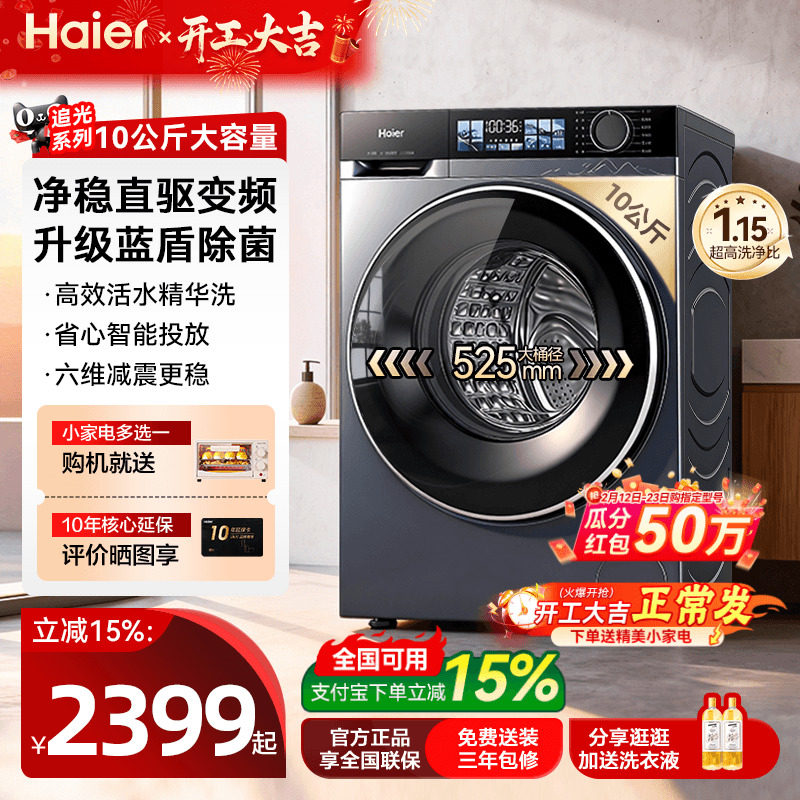 海尔直驱37E滚筒洗衣机以旧换新10公斤全自动家用洗烘一体云溪77E