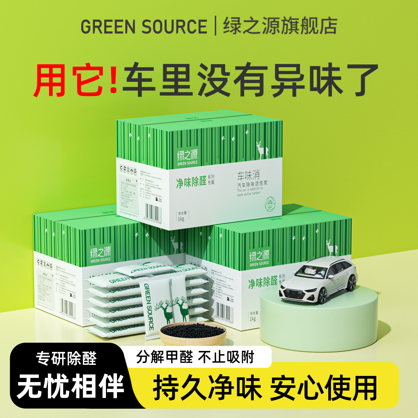 绿之源汽车除味活性炭新车净化除甲醛异味快吸附炭包店长推荐神器