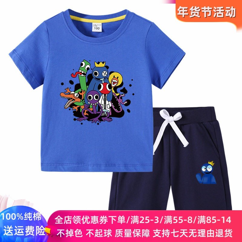 彩虹朋友衣服男童T恤短袖套装夏季新款童装儿童纯棉薄款两件套潮