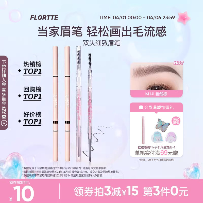 • 泡美丽»»FLORTTE/花洛莉亚眉笔自然防水新手精细眉笔旗舰店官方正品学生党