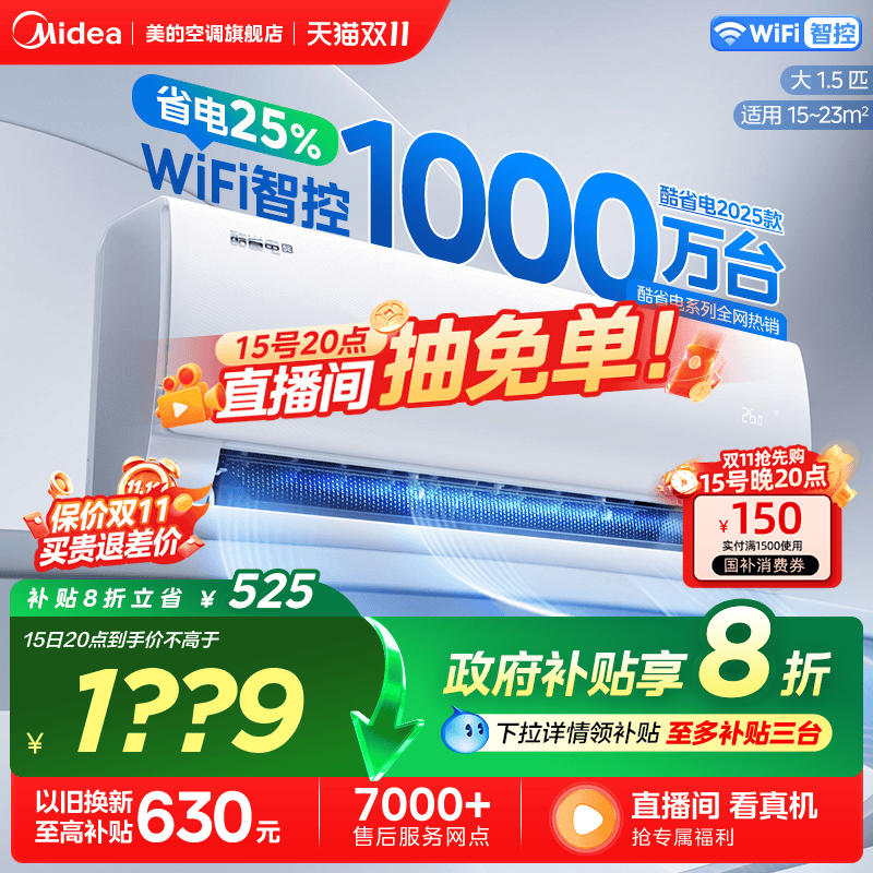 美的酷省电Pro空调家用一级卧室1.5匹2匹官方变频冷暖正品大挂机