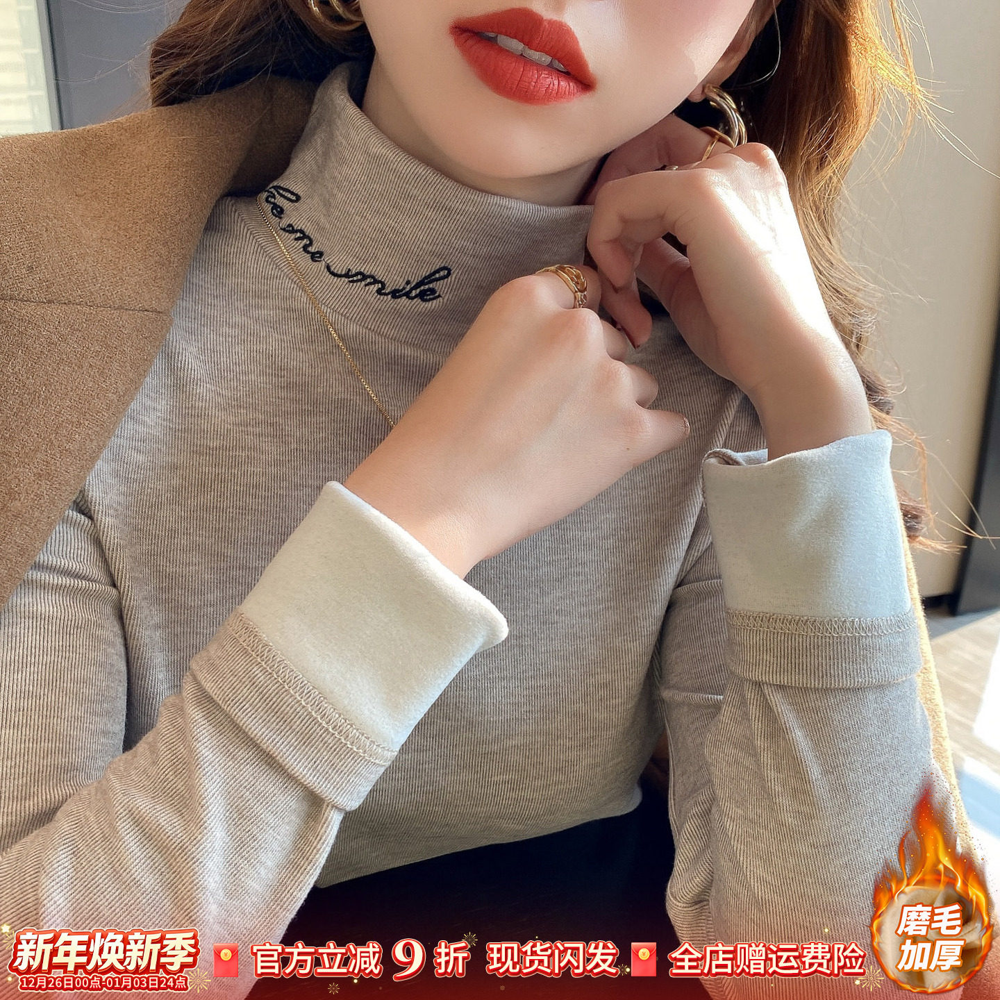 • 泡美丽»»高领打底衫女德绒秋冬加绒加厚保暖t恤阳离子洋气内搭磨毛上衣服