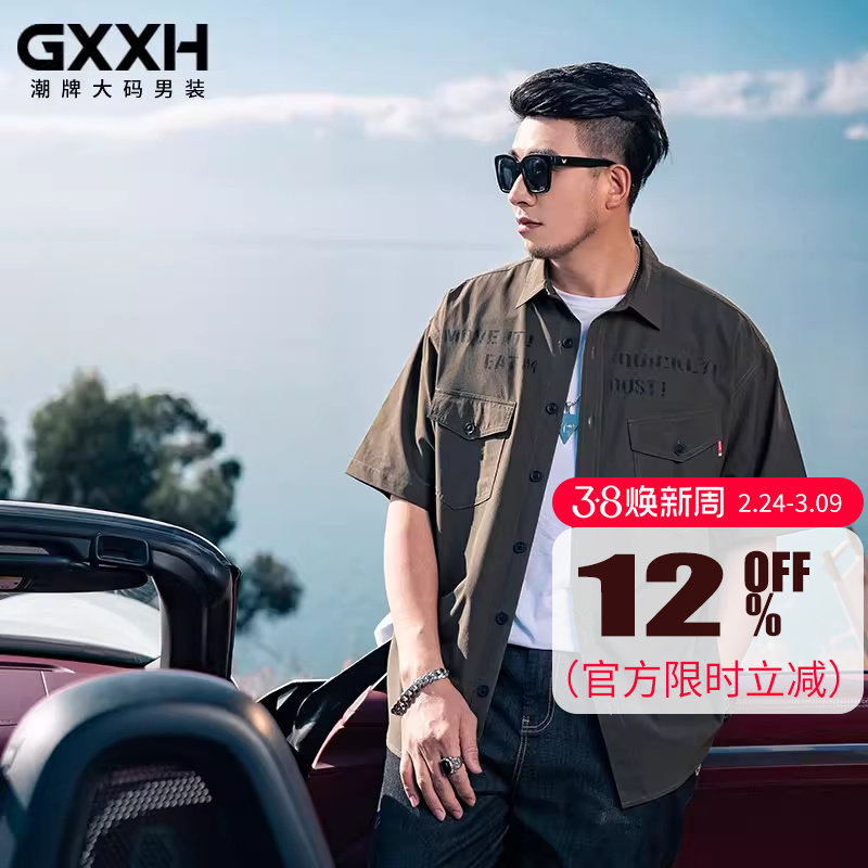 GxxH大码男装日系短袖衬衫男潮流宽松个性休闲百搭薄款短袖上衣