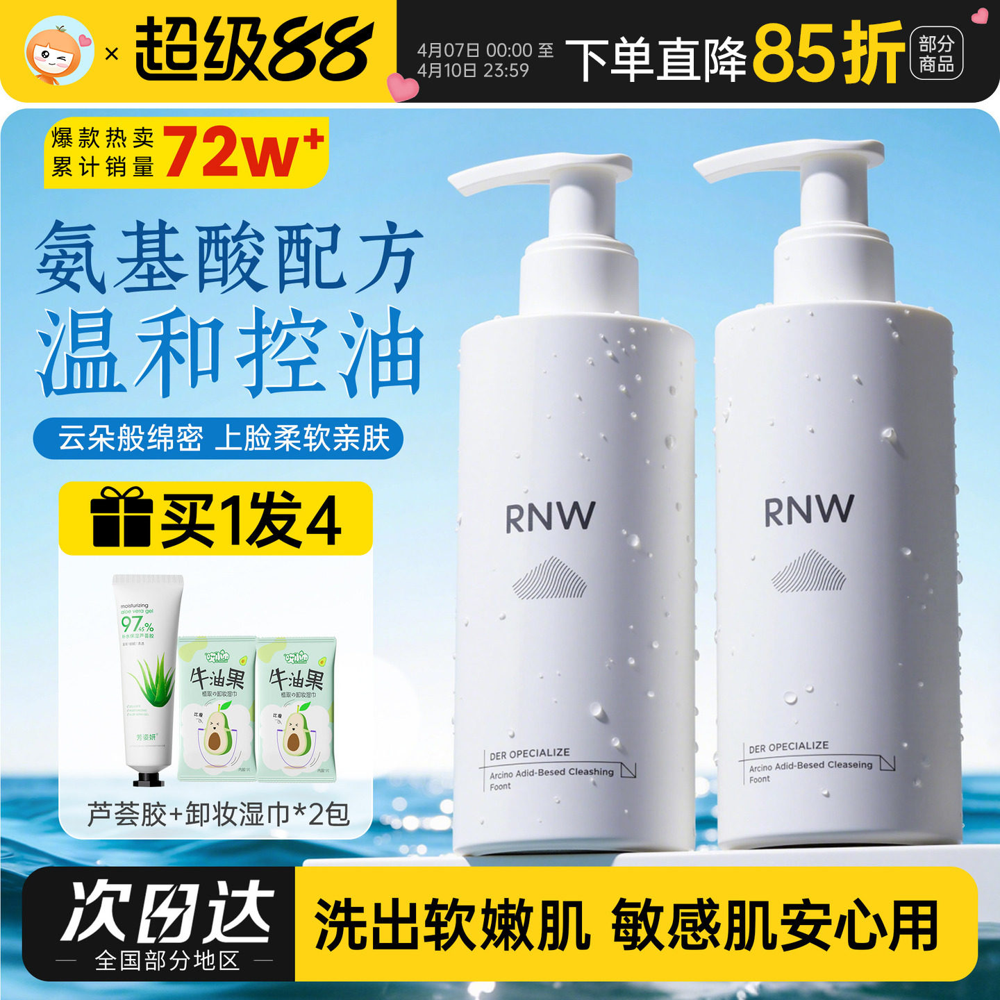 RNW氨基酸洗面奶女清洁毛孔洁面乳如薇男士控油自动发泡洁面慕斯