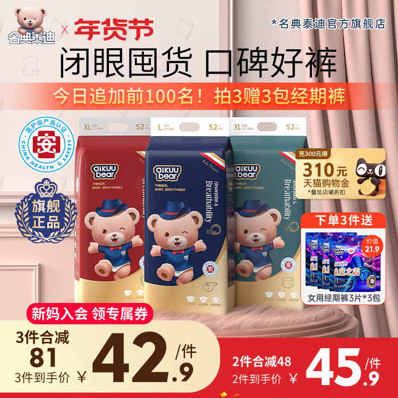 名典泰迪拉拉裤超薄透气纸尿裤男女宝宝专用新生婴儿尿不湿官方级