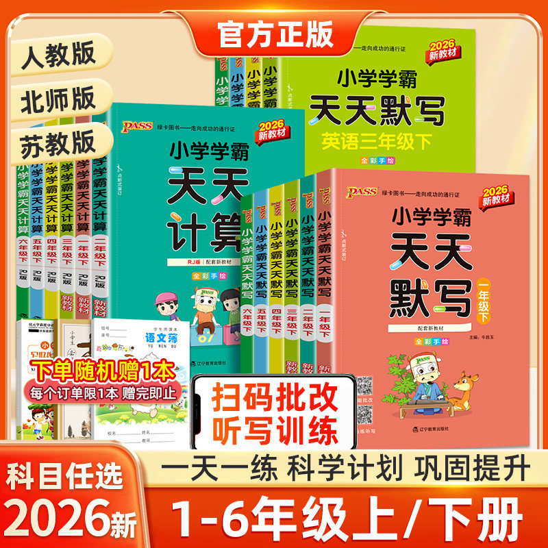2026春小学学霸天天默写一年级天天计算二年级三四五六年级上下册语文数学英语人教