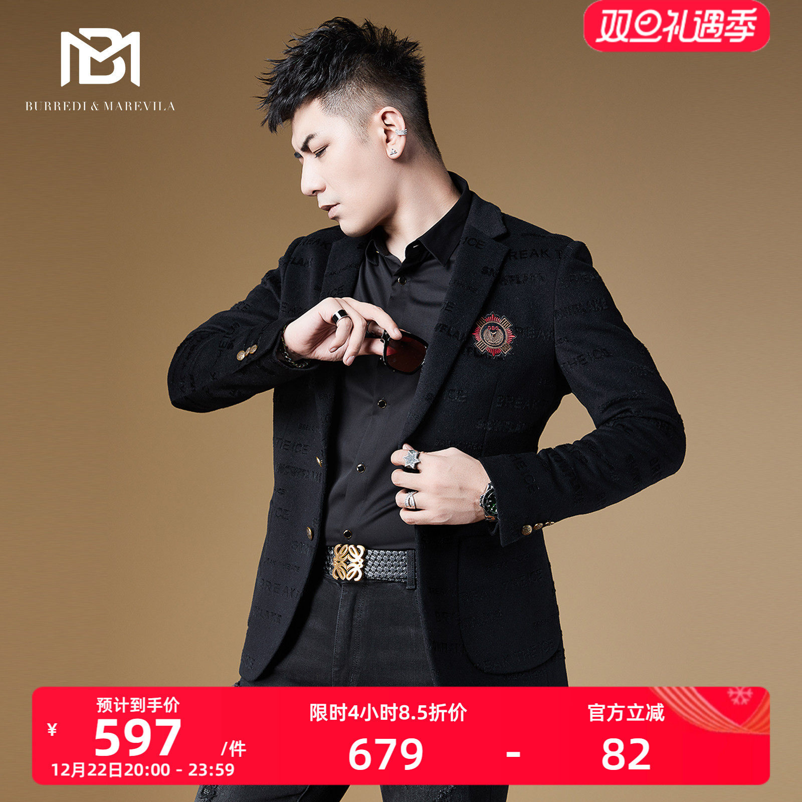 BM轻奢男装高级感刺绣羊毛西装外套男正装潮2023新款男士休闲西服