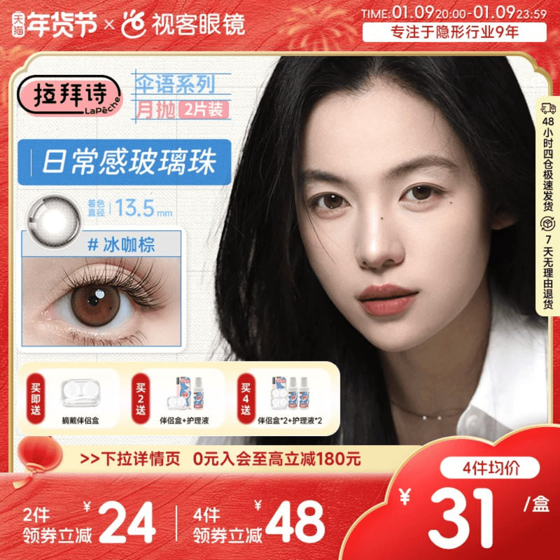 LaPeche拉拜诗伞语月抛2片三色美瞳彩色隐形眼镜大小直径夜夜生黑