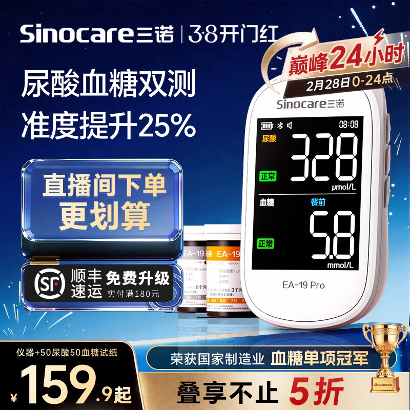 三诺EA-19尿酸检测仪血糖双功能测试仪家用医用标准痛风监测尿酸
