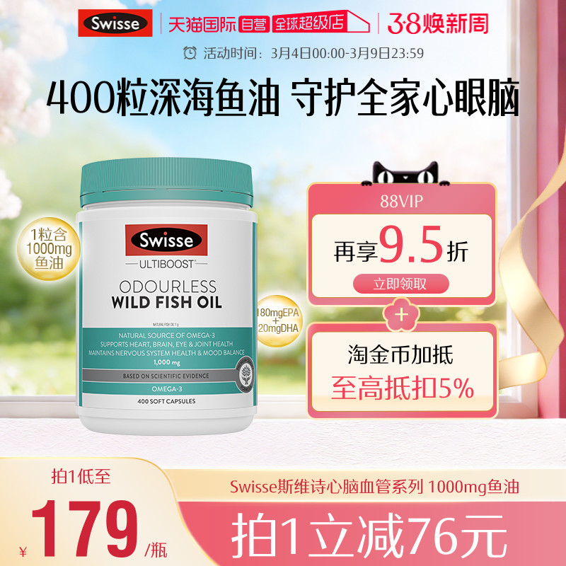 【自营】Swisse斯维诗深海鱼油软胶囊正品omega3成人养护正品鱼油