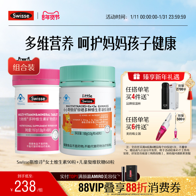 Swisse斯维诗蓝帽儿童复合维生素补锌男女士维生素e维b免疫力官方
